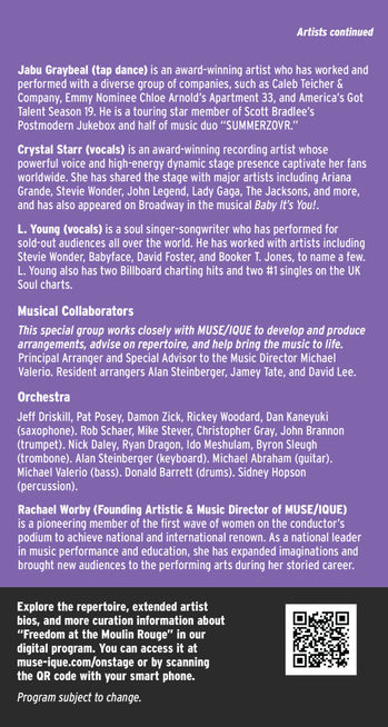 Though the Moulin Rouge would close just five months after its opening, it became a crucial cornerstone of hope and pride in Las Vegas’s civil rights movement and the integration of the Strip. MUSE/IQUE celebrates its enduring legacy by bringing the vibrant, triumphant music of 1950s Las Vegas back to life and sharing this tremendous under-told story of hope, freedom, and resilience.